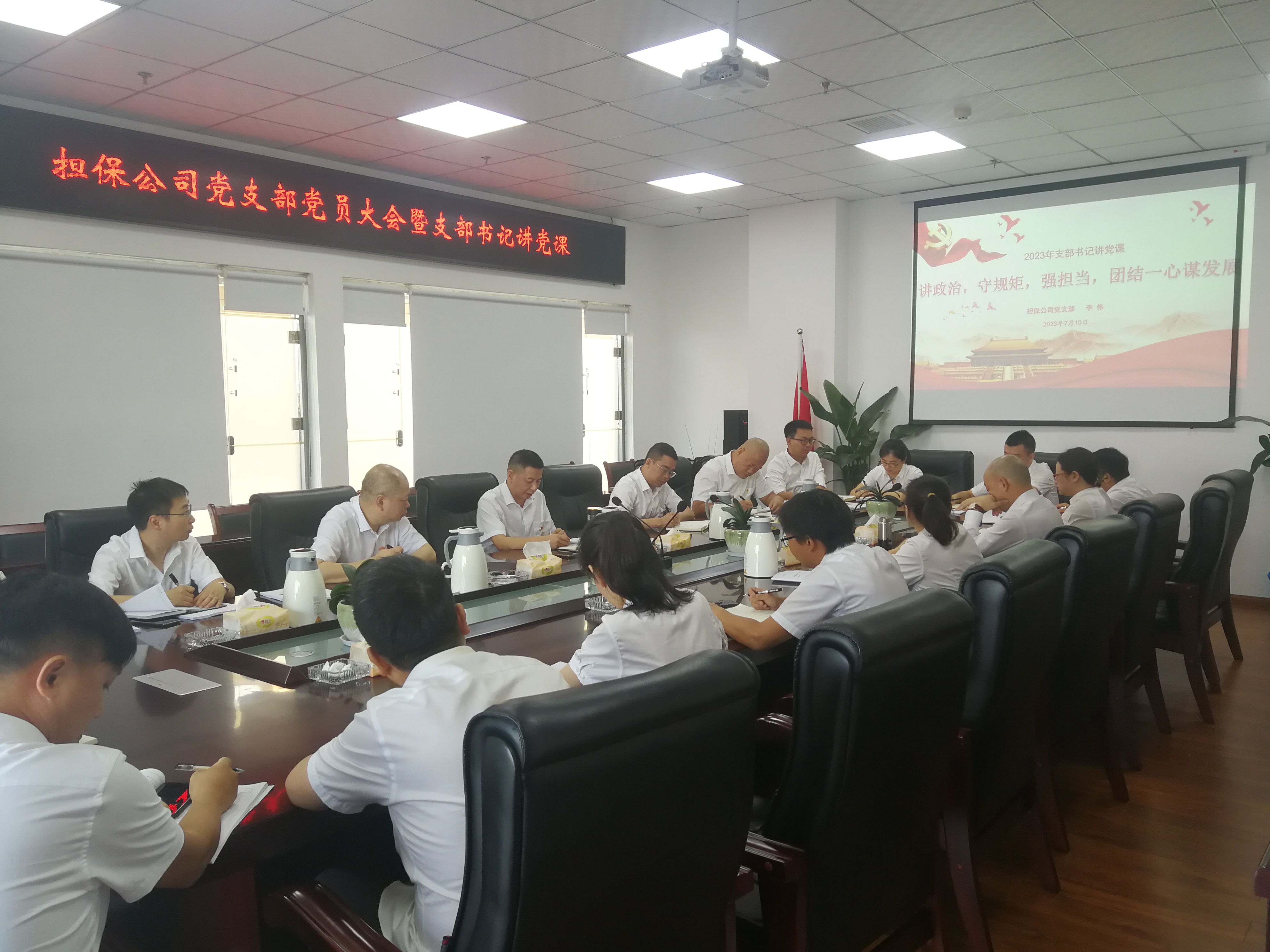 7月10日,融資擔(dān)保公司支部書(shū)記李偉以“講政治,守規(guī)矩,強(qiáng)擔(dān)當(dāng),團(tuán)結(jié)一心謀發(fā)展”為題,為全體黨員、入黨積極分子上了一堂專(zhuān)題黨課。